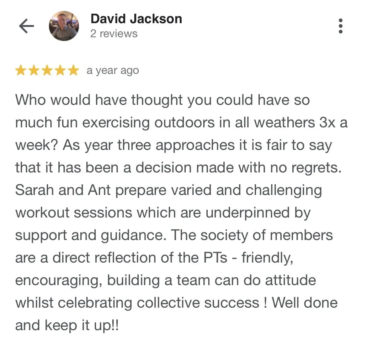 There’s something about the fresh air and the change of scenery that keeps you coming back for more. Our members often say they feel more energised and motivated at our outdoor bootcamps compared to hitting the gym alone. Plus, working out with a group in a beautiful park? It's just plain fun.